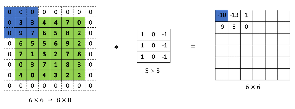 Padding을 하지 않으면 CNN layer를 통과할 때마다 가로/세로 크기가 감소하지만, Padding을 적용하면 Convolution을 수행해도 데이터의 크기를 동일하게 유지할 수 있습니다.