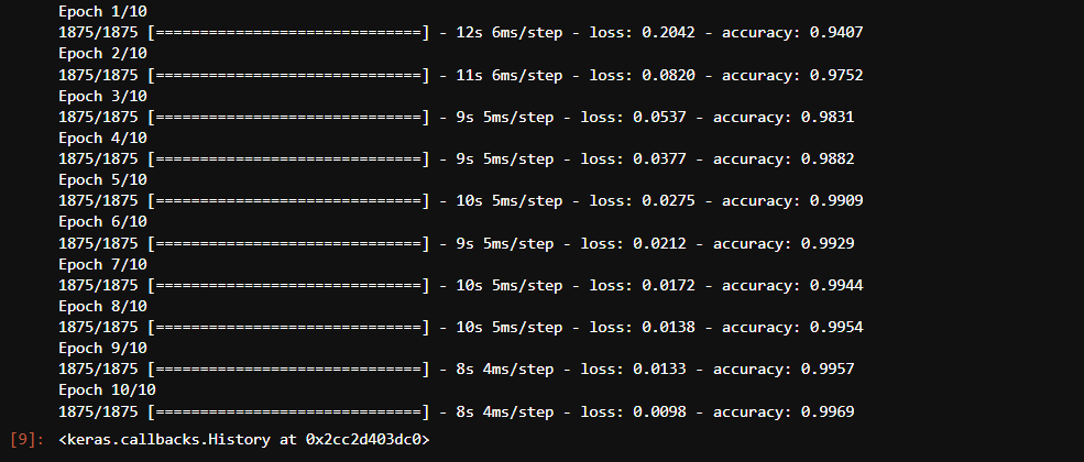 model.fit(x_train, y_train, epochs = 10, validation_split = 0.2)